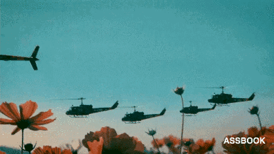 军事飞机与地下鲜花的对比出奇强烈
