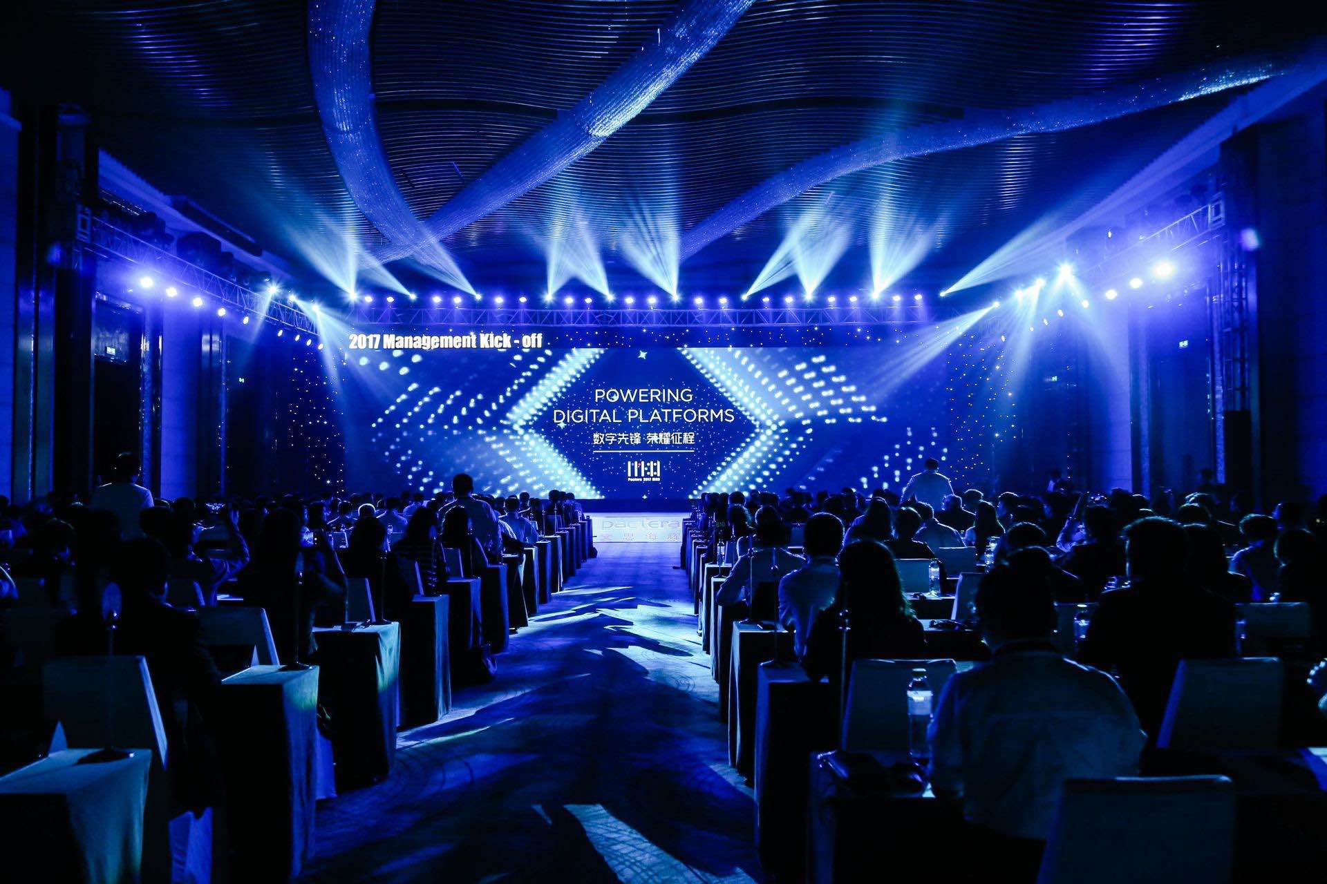 展区的搭建设计充满了科技感,会议现场及晚宴时灯光效果出色。