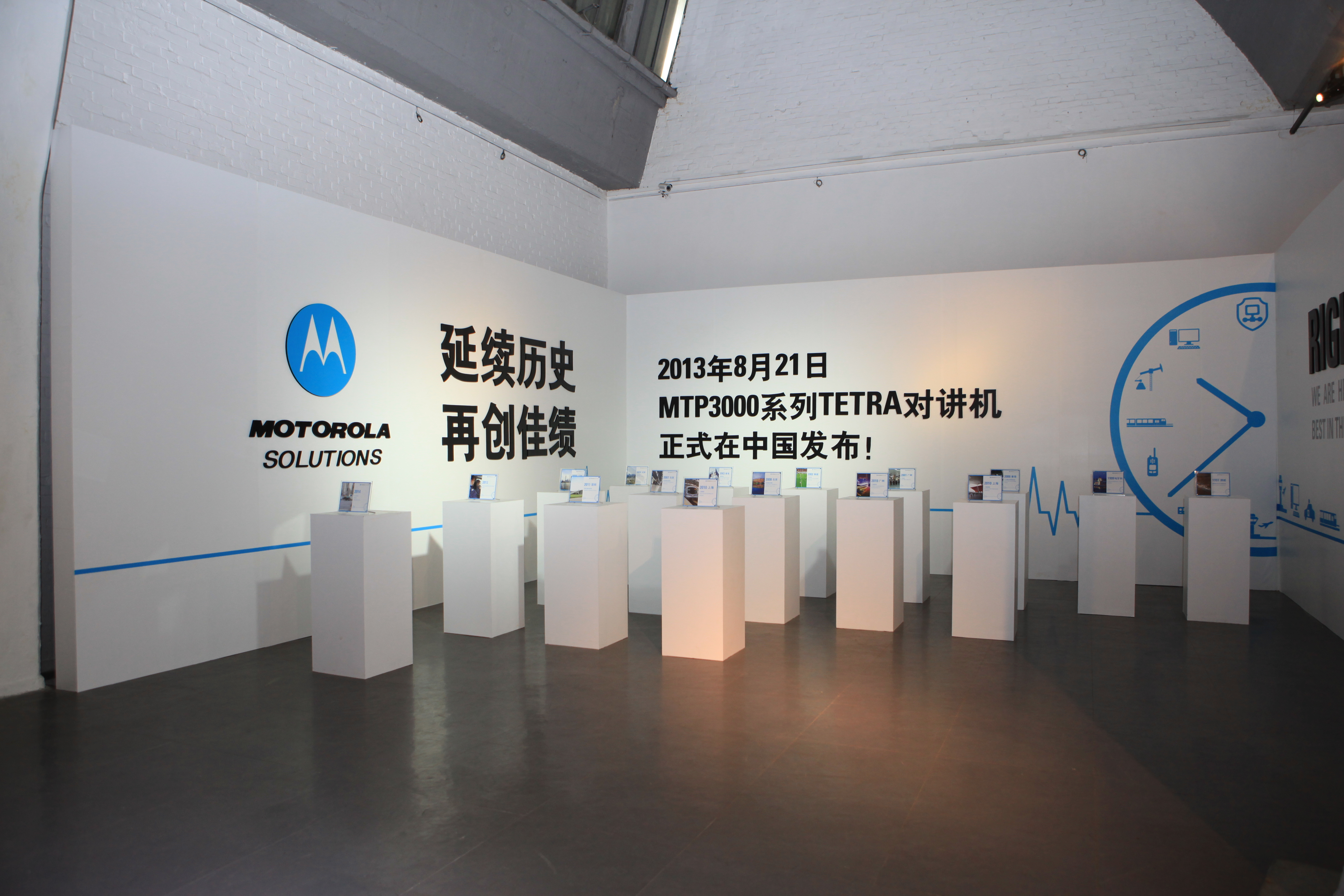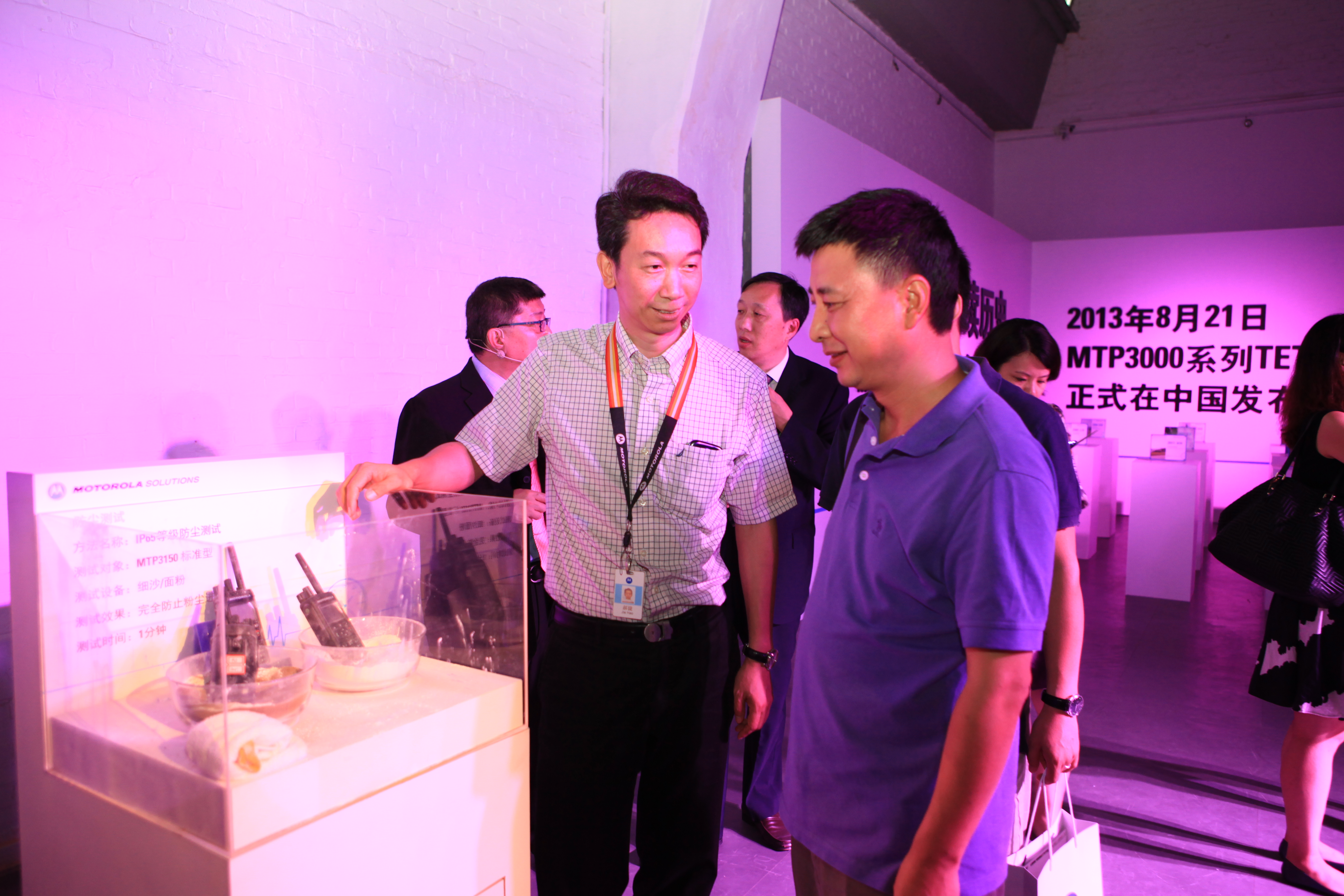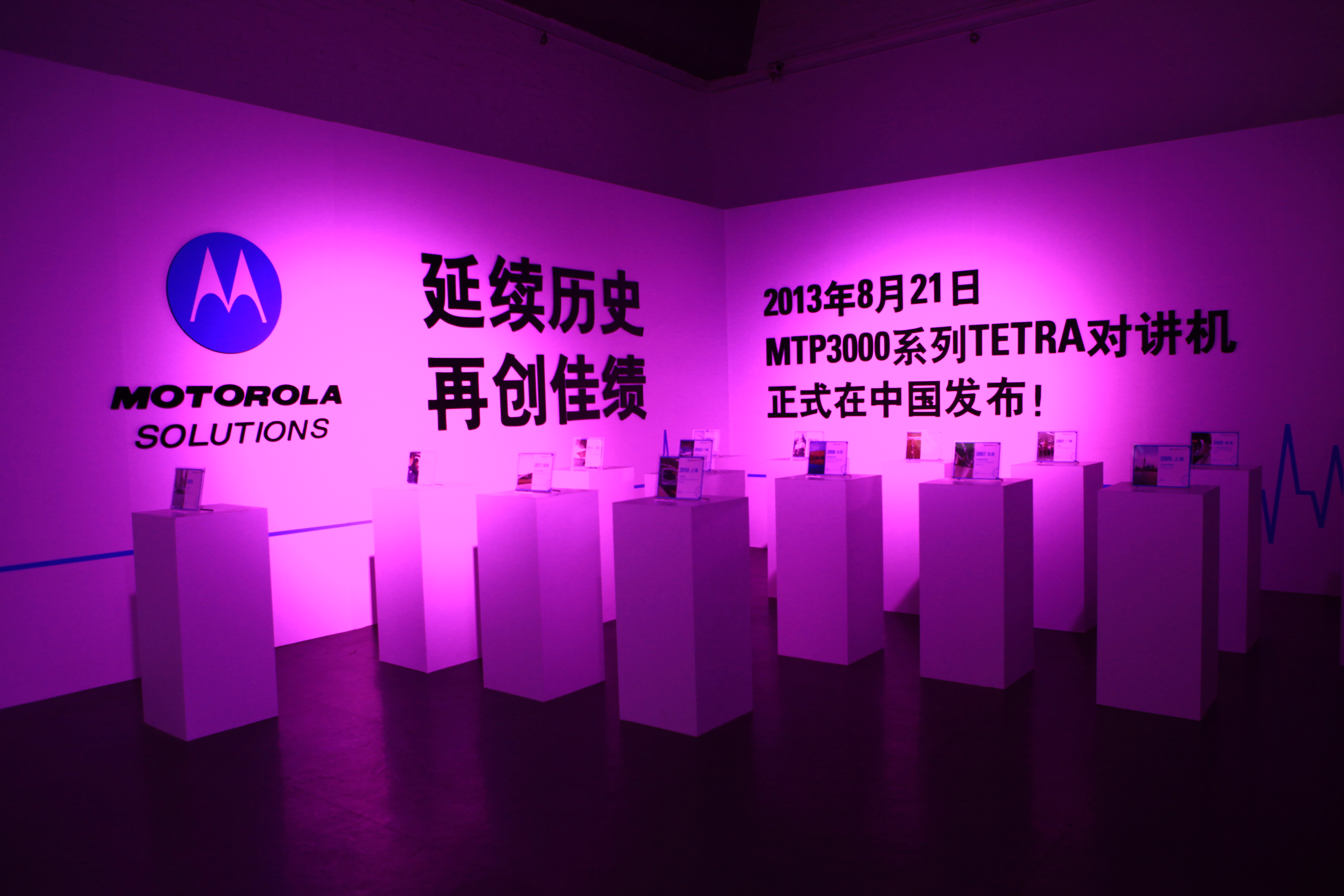 2013年8月21日,在北京798杨艺术中心举办的摩托罗拉系统对讲机发布会,共有70余名嘉宾和媒体们参与了本次发布会。其中包括来自各大主流媒体共28名,涵盖IT、门户网站和目标垂直行业,包括电信,公安,航空,港口和能源等,重点合作伙伴26名,专业移动通讯委员会的6名专家以及摩托罗拉系统的工作人员10名。